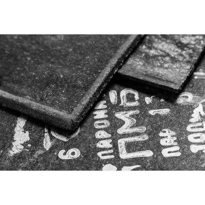 Паронит марки ПМБ (маслобензостойкий) представляет собой асбестовый прокладочный листовой материал, изготовленный на основе асбестового волокна с добавлением каучука, наполнителей и вулканизирующих компонентов. Производится в соответствии с ТУ 2570-010-21523050-2017 на предприятии г. Челябинска (Россия).